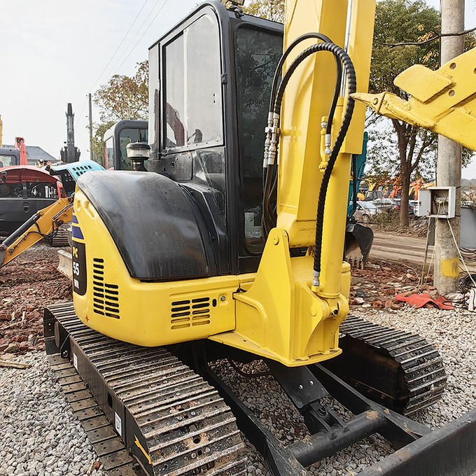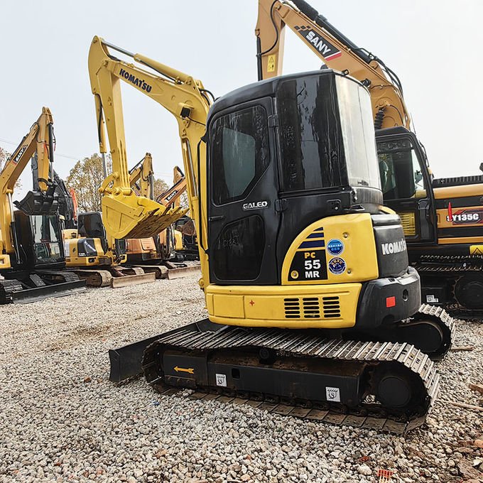 The used Komatsu PC55 excavator is an used crawler hydraulic excavator with tight tail swing radius and swing booms that hug the machine to help with work in tight spaces.auto decelerator (standard)/idle shut down (standard)/1st proportional line (standard).Newly developed hydraulic electronic controls/selectable working modes